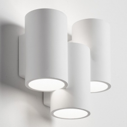 Applique Arta 3 lumières bi directionnel Sforzin lampe à plâtre invisible un encastrée. Une fois le mur enduit, le raccord encastré fera partie intégrante du mur et pourra être peint. Convient aux ampoules halogènes ou fluorescentes et aux LED. Un belle éclairage architectural qui communique avec votre décoration et votre espace de vie ou de travail. Peinte ou brute la source de lumière fait de cette applique encastrable une sculpture moderne.
