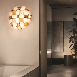 Applique Mida de Slamp est un plafonnier à attache magnétique inspiré par le monde de la haute joaillerie, au pavé de pierres précieuses serties sur une structure presque invisible, aux pierres taillées en brillants lisses et polis et disposées en corolle aux couleurs chatoyantes et soyeuses. Disponible en cinq teintes, Mida est réalisée entièrement à la main avec une combinaison imprimé avec une finition morphing spéciale à effet soie sur laquelle se succèdent des strass métallisés brossés. Une Mida dans la pièce et tout devient précieux.