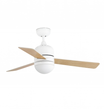 Ventilateur de plafond aux lignes classiques. Idéal pour la ventilation de pièces à partir de 13m2 jusqu’à 17m2. Moteur en acier, pales en MDF finitions blanche/érable réversibles et diffuseur en verre opalin. Le modèle CEBU dispose de 3 vitesses réglables avec une consommation de 8-22-38W et 84-140-180 tours par minutes selon la vitesse. Ce ventilateur dispose d’une fonction inverse, vous pourrez donc l’utiliser en hiver.