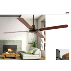 Ventilateur de plafond moderne idéal pour des pièces à partir de 17,6m2. Moteur en aluminium et pales en bois. Pales en acier et acajou rougeâtre. Fonctionne à l’aide d’un régulateur mural (inclus) de 5 vitesses réglables (111-145 -170-187-229 rpm) correspondant aux consommations suivantes : 24-37-48-57-80W. Ventilateur avec fonction été/hiver. Peut être installé sur plafond mansardé.